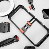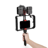 با سه پایه Jmary MT-33 شما می توانید به راحتی 4 دستگاه مختلف را به این سه پایه متصل نمایید شاید برای شما سوال پیش آمده که این 4 دستگاه میتوانند چه محصولاتی باشند؟ به لطف محفظه نگهدارنده آن می توانید تلفن همراه خود را به راحتی در آن قرار دهید با وجود سوراخ های موجود در اطراف این سه پایه می توانید به راحتی نور LED و میکروفن و یا حتی دوربین ثانویه خود را در این سه پایه قرار دهید. ایده آل برای ضبط فیلم های با کیفیت بالا - همزمان نگه داشتن دو دستگیره می تواند تلفن همراه را به راحتی حفظ کنید و با این کار لرزش را به شدت کاهش دهید. ابزاری خارق العاده برای گرفتن فیلم با کیفیت بالاتر. می توانید آن را با هر Trpod ، Slider ، Stabilizer یا Dollys و ... نصب کنید و با این کار کیفیت تصویر برداری خود را افزایش دهید. سازگار با همه تلفن های هوشمند (4 اینچ تا 7 اینچ). برای گرفتن فیلم های حرفه ای می توانید همزمان نور LED اضافی ، میکروفون یا سایر ضمیمه ها را اضافه کنید.چراغ LED را ضمیمه کرده و می توانید در صحنه های مختلف فیلم بگیرید.به عنوان مثال ، در شب یا در محیط تاریک فیلم بگیرید