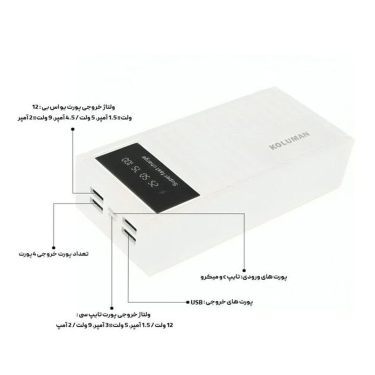 پاور بانک کلومن مدل KP-023 کانتینری ظرفیت 30000 میلی آمپر ساعت